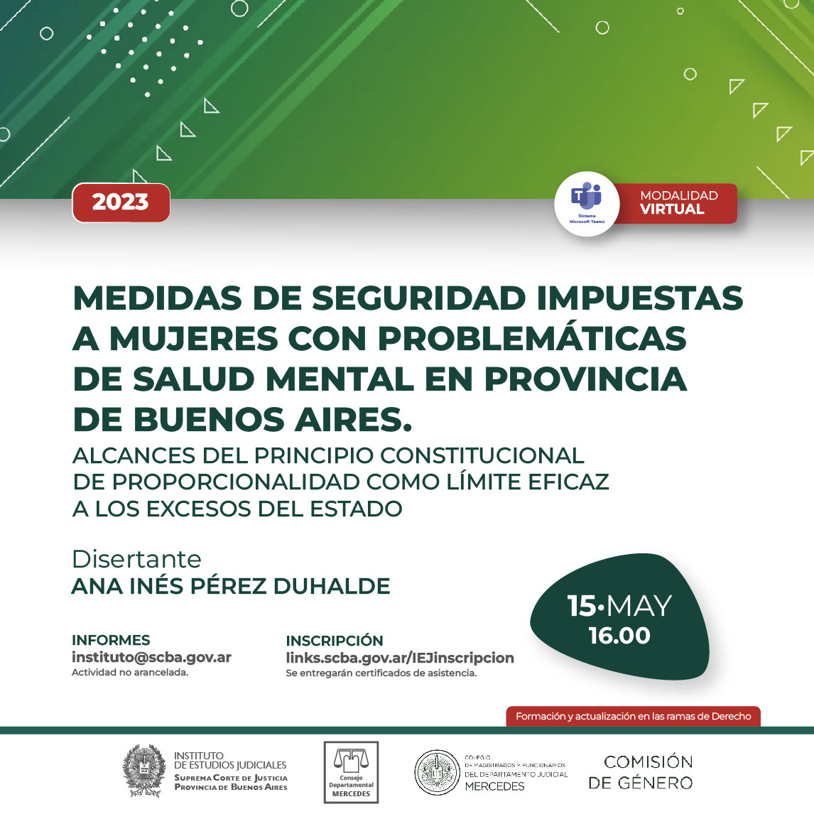 15-05-2023 | Medidas de seguridad impuestas a mujeres con problemáticas de salud mental en provincia de Buenos Aires. Alcances del principio constitucional de proporcionalidad como límite eficaz a los excesos del Estado ( a distancia )