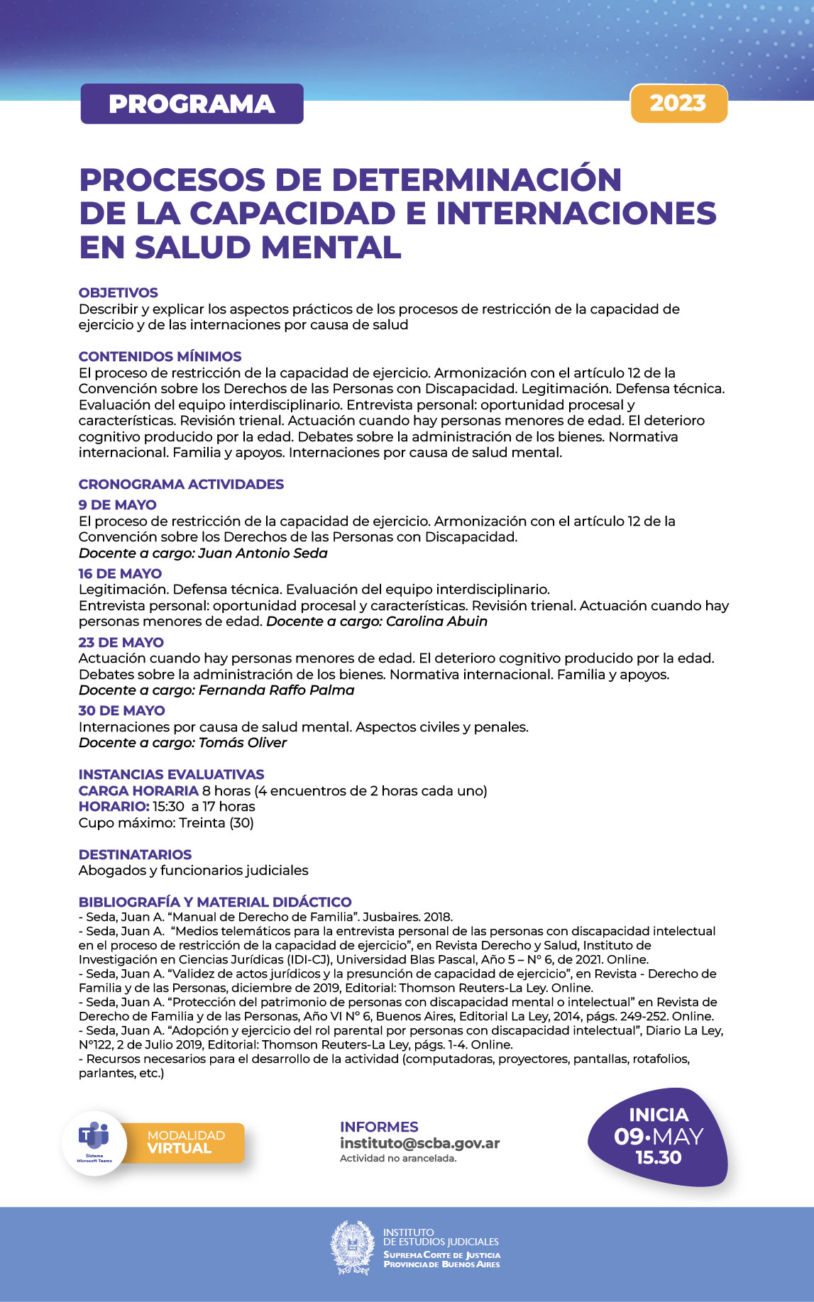 09-05-2023 | Procesos de determinación de la capacidad e internaciones en salud mental ( a distancia )