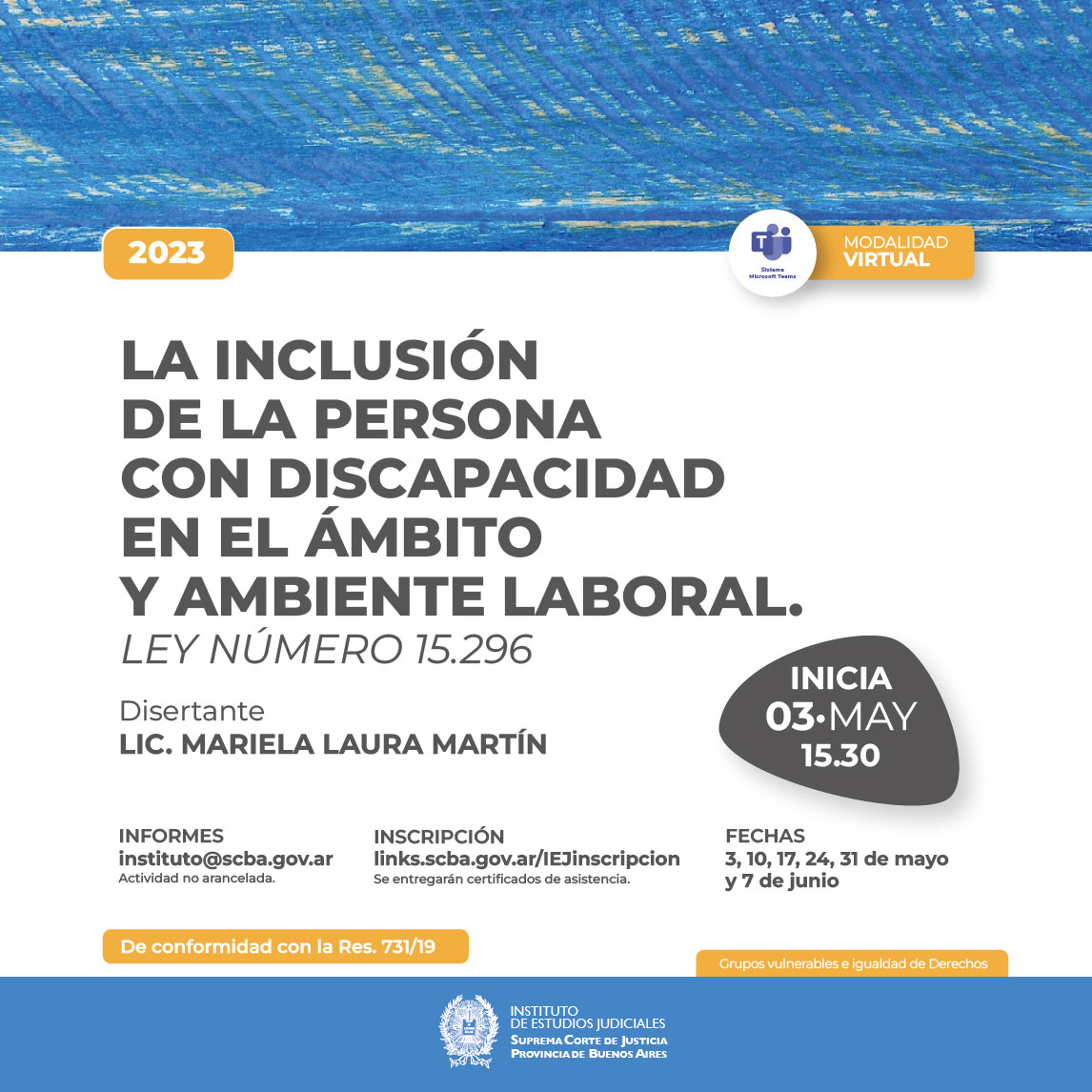 03-05-2023 | La inclusión de la persona con discapacidad en el ámbito y ambiente laboral. Ley número 15.296 ( a distancia )