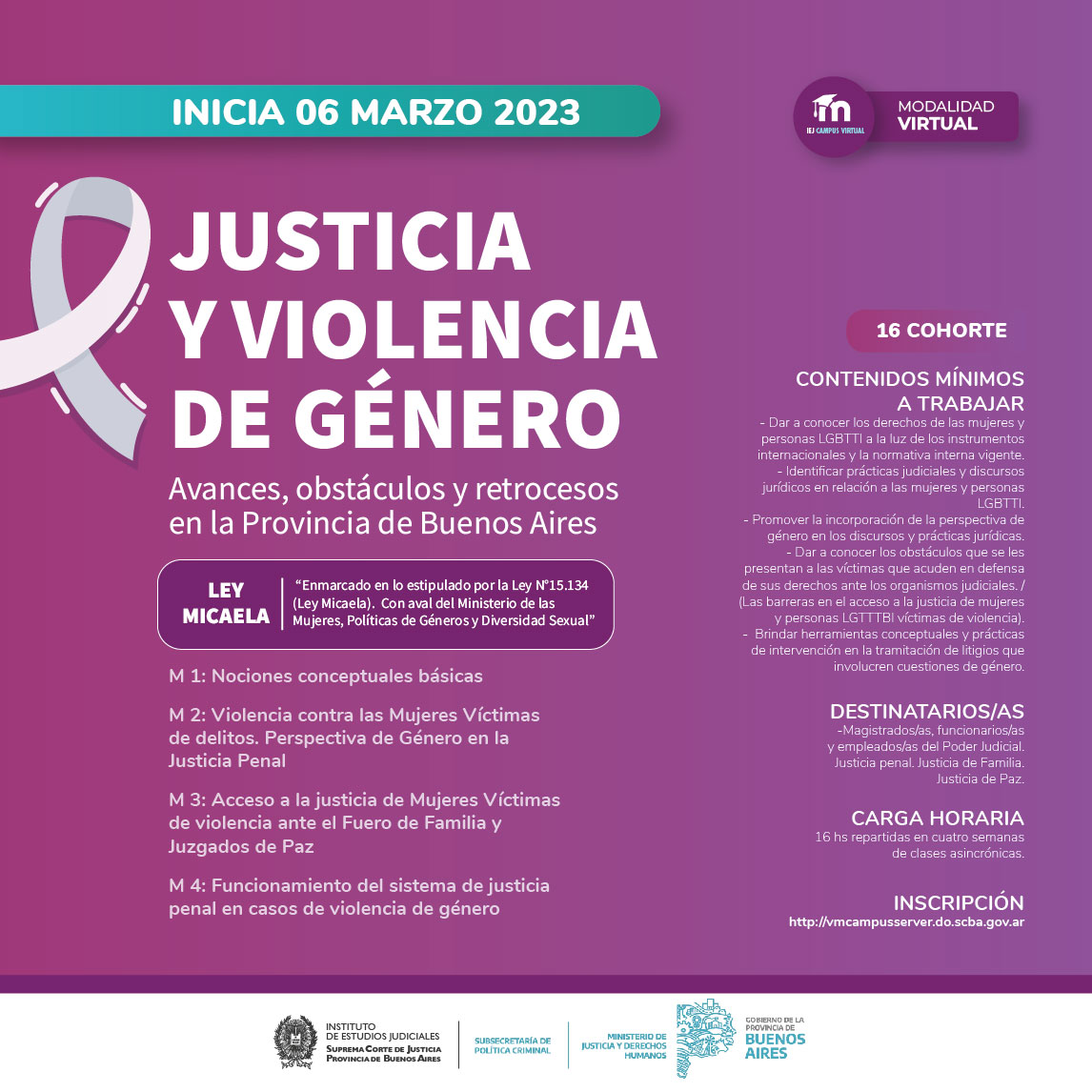 Actividad enmarcada en el PLAN DE FORMACIÓN CONTINUA Y PERMANENTE EN MATERIA DE GÉNERO PARA OPERADORES Y OPERADORAS JUDICIALES PERTENECIENTES A LA SUPREMA CORTE DE JUSTICIA DE LA PROVINCIA DE BUENOS AIRES EN EL MARCO DE LA LEY MICAELA (15.134) -Plan anual 2023- y con aval del Ministerio de las Mujeres, Políticas de géneros y Diversidad sexual