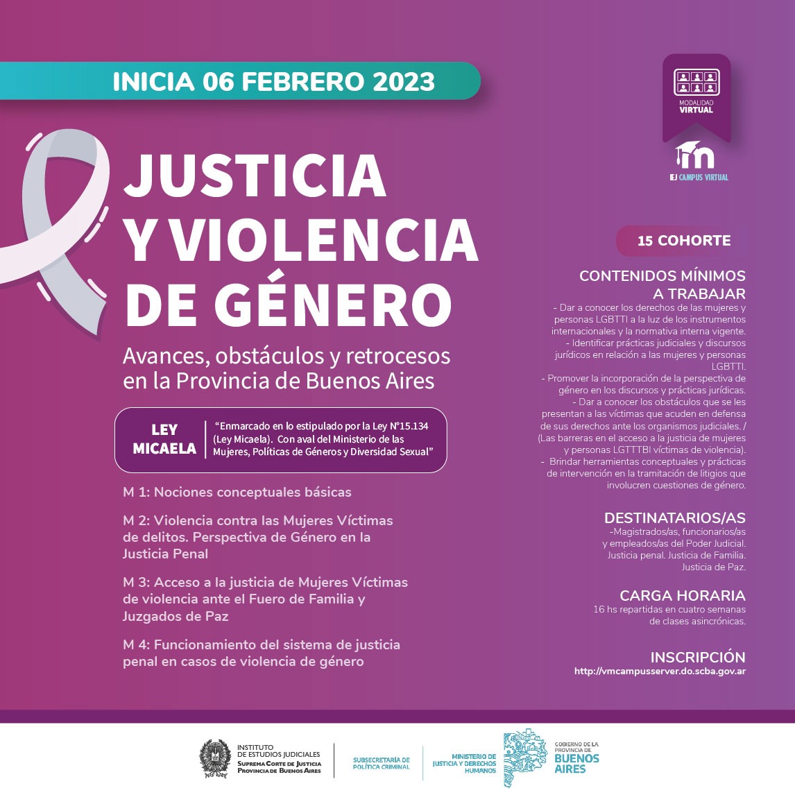 Actividad enmarcada en el PLAN DE FORMACIÓN CONTINUA Y PERMANENTE EN MATERIA DE GÉNERO PARA OPERADORES Y OPERADORAS JUDICIALES PERTENECIENTES A LA SUPREMA CORTE DE JUSTICIA DE LA PROVINCIA DE BUENOS AIRES EN EL MARCO DE LA LEY MICAELA (15.134) -Plan anual 2023- y con aval del Ministerio de las Mujeres, Políticas de géneros y Diversidad sexual.