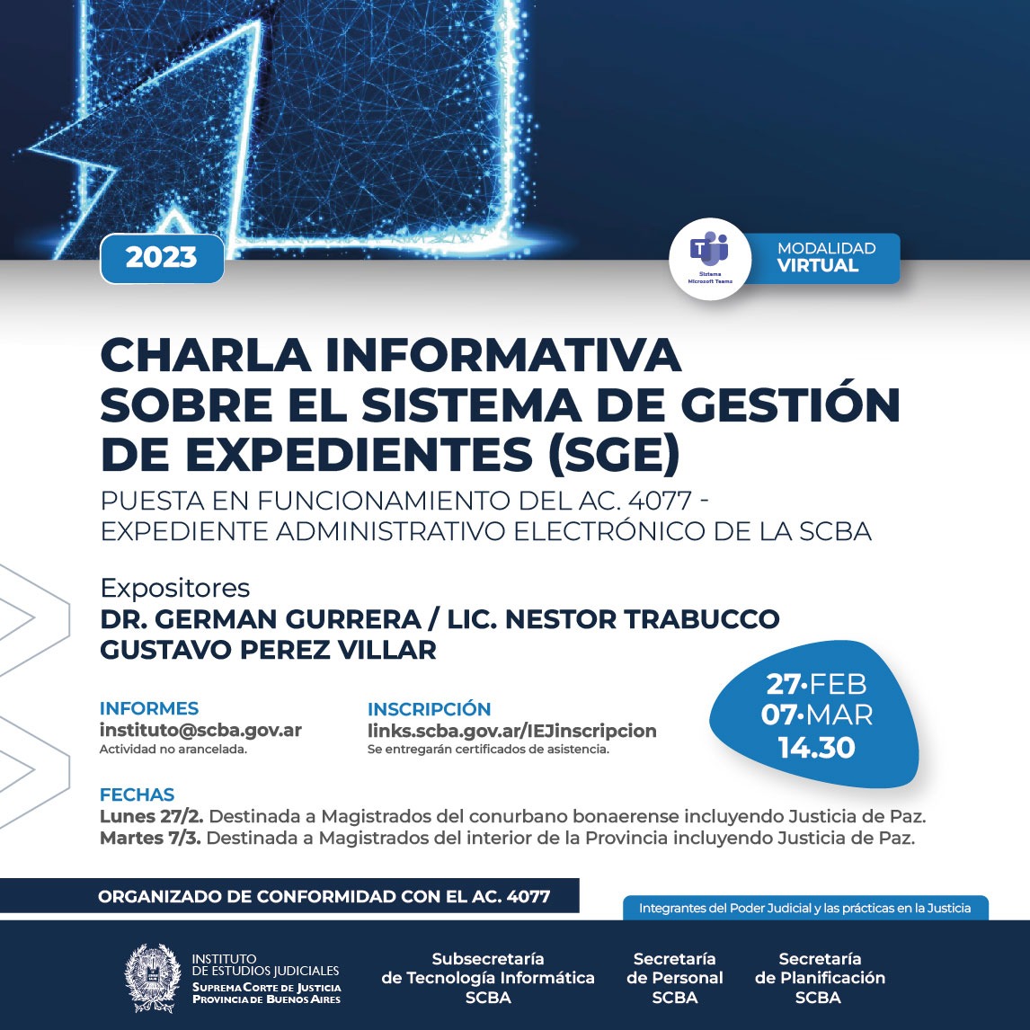 27-02-2023 | Charla informativa sobre el sistema de Gestión de Expedientes - SGE - ( a distancia )