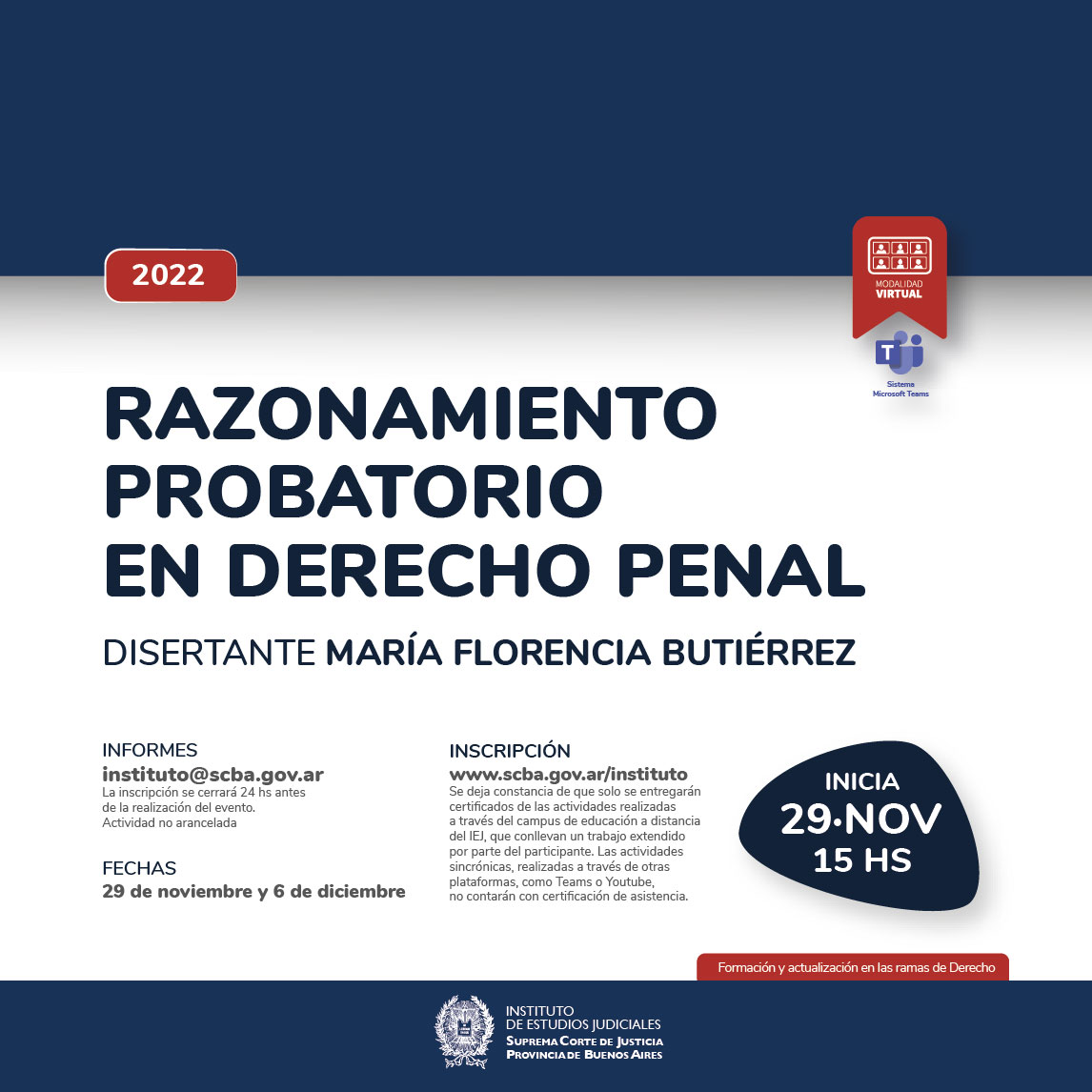 29-11-2022 | Razonamiento probatorio en derecho penal ( a distancia )