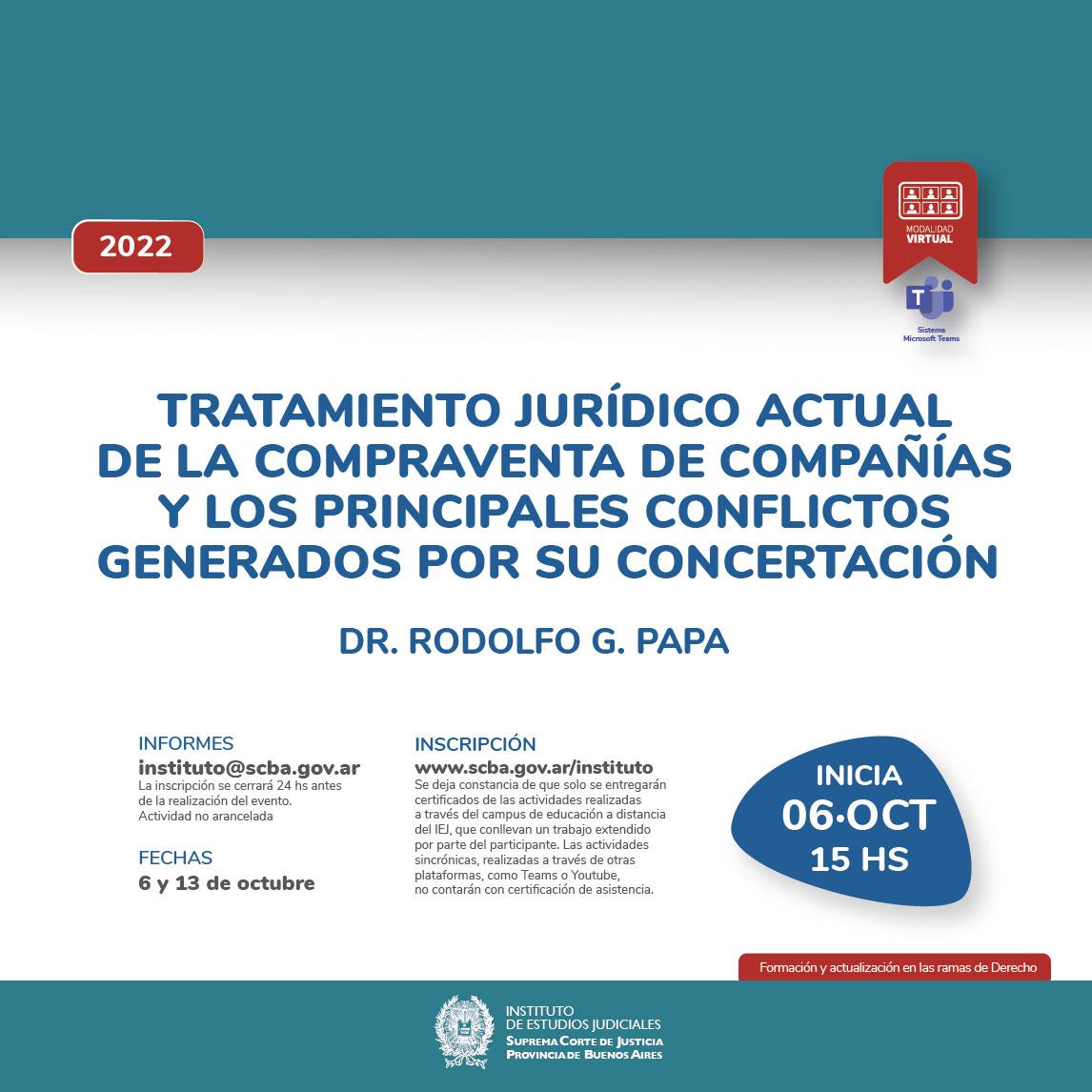 06-10-2022 | Tratamiento jurídico actual de la compraventa de compañías y los principales conflictos generados por su concertación ( a distancia )
