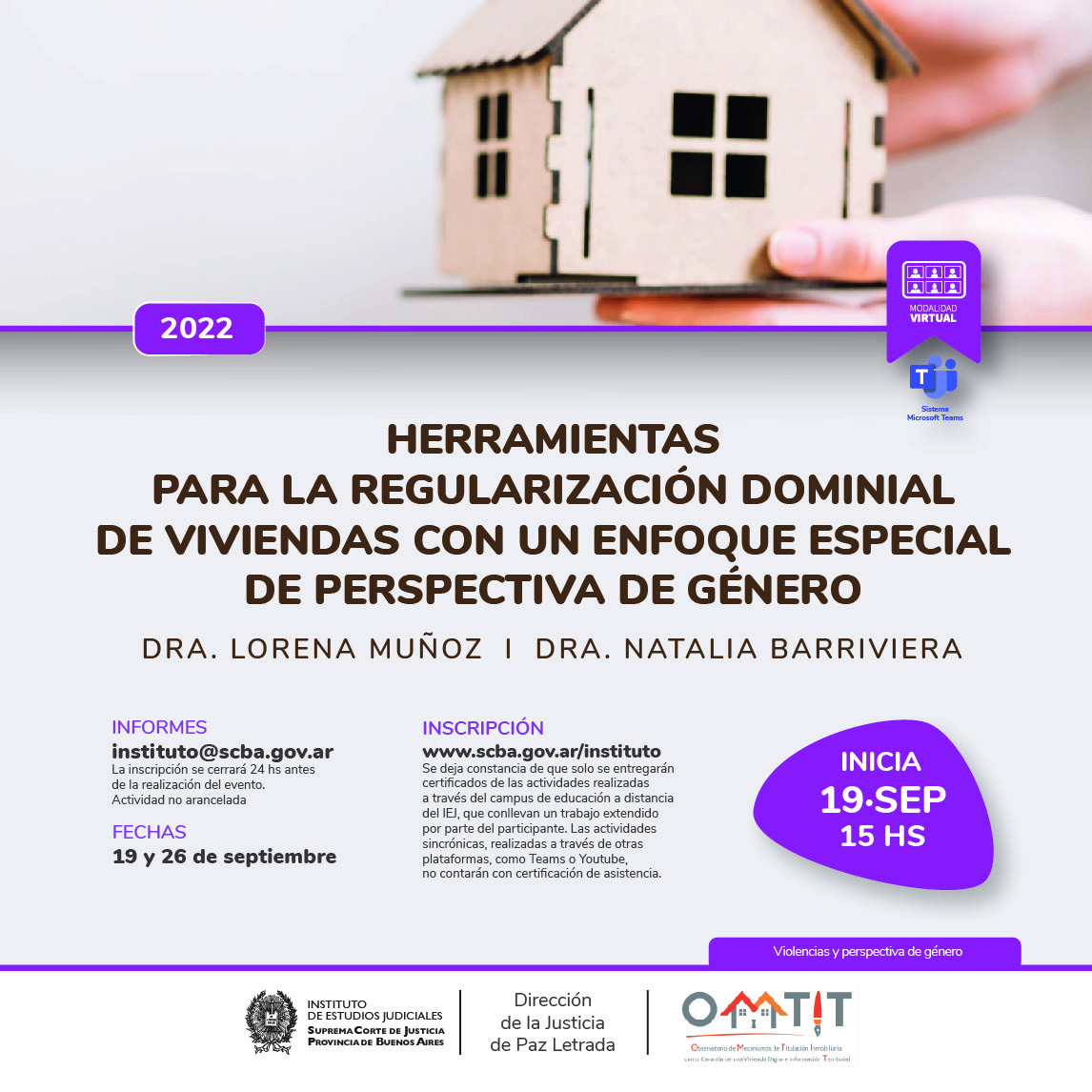 19-09-2022 | Herramientas para la regularización dominial de viviendas con un enfoque especial de perspectiva de Género ( a distancia)