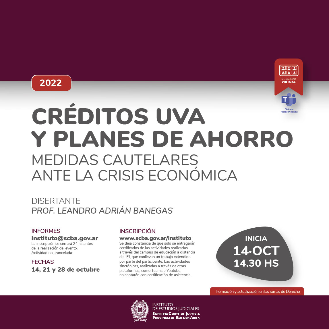 14-10-2022 | Créditos UVA y planes de ahorro. Medidas cautelares ante la crisis económica ( a distancia )