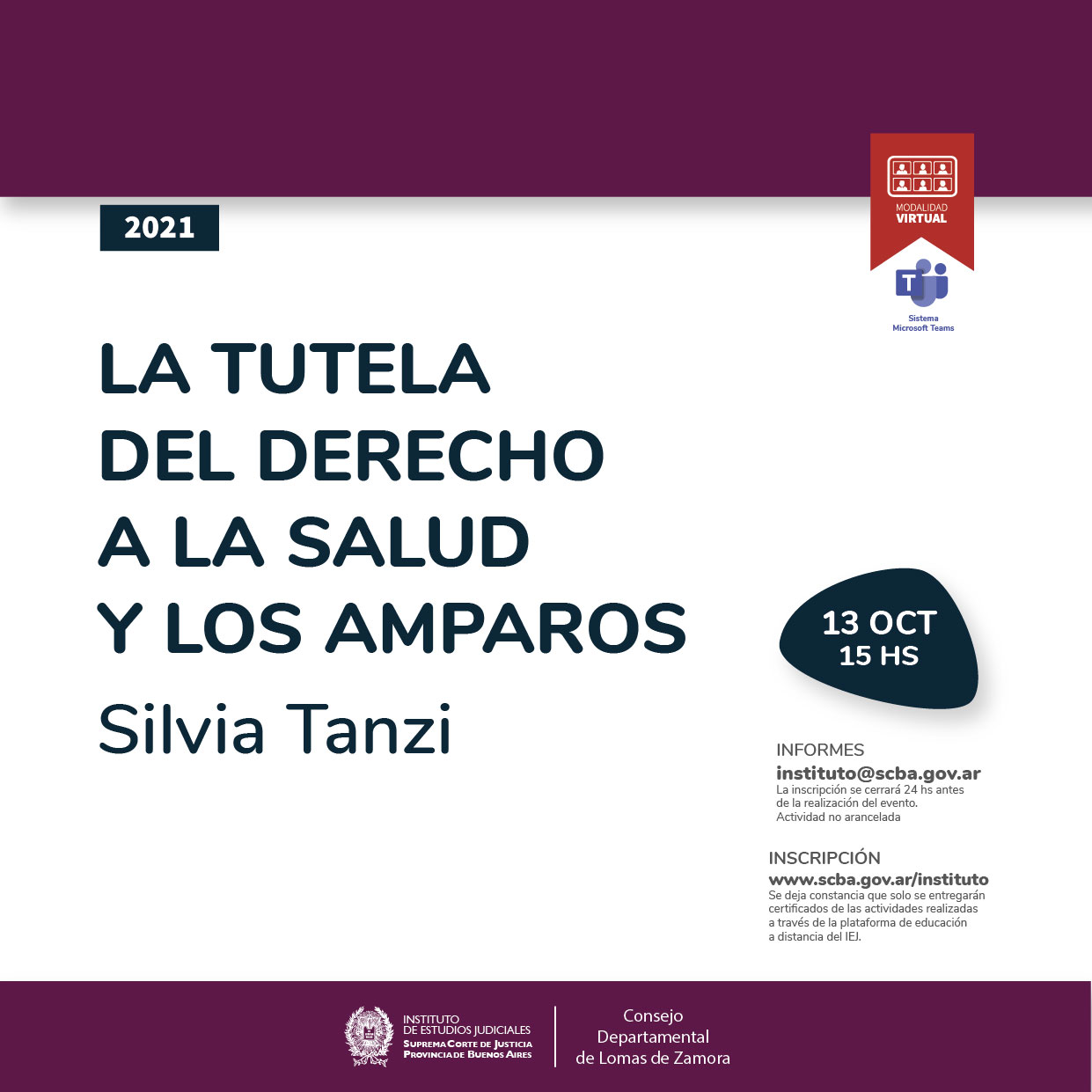 La actividad será abierta a todo público interesado y realizada bajo la modalidad virtual, transmitida en vivo por el canal de YouTube de la SCBA: