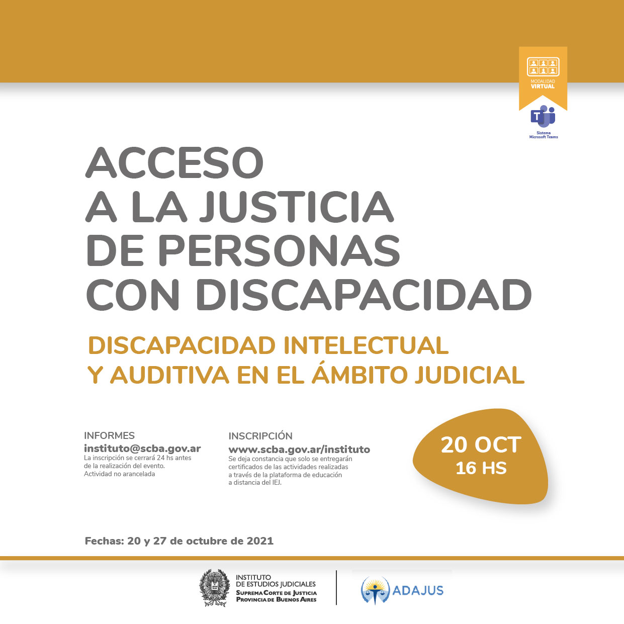 20-10-2021 | Acceso a la Justicia de personas con Discapacidad: discapacidad intelectual y auditiva en el ámbito Judicial ( a distancia )