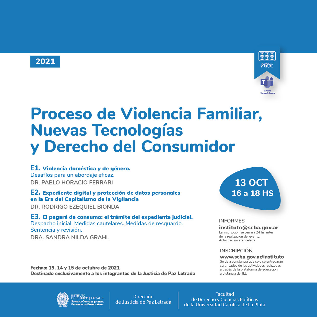 13-10-2021 | Proceso de Violencia Familiar, Nuevas Tecnologías y Derecho del Consumidor ( a distancia )
