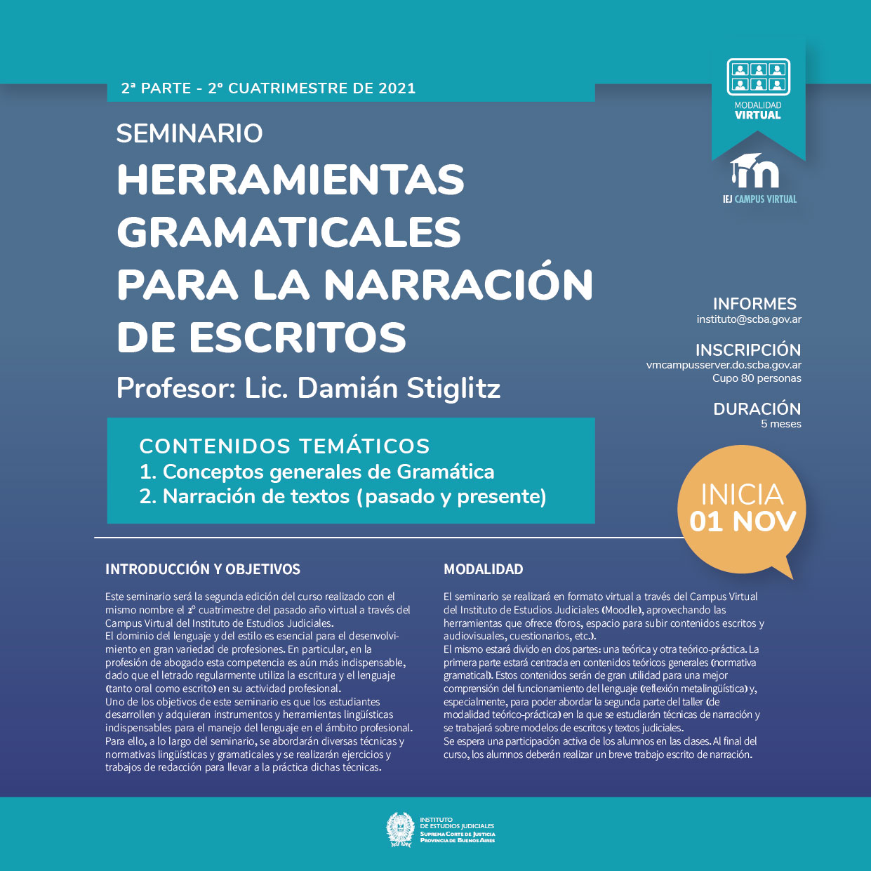 01-11-2021 | Herramientas Gramaticales para la Narración de Escritos ( a distancia )