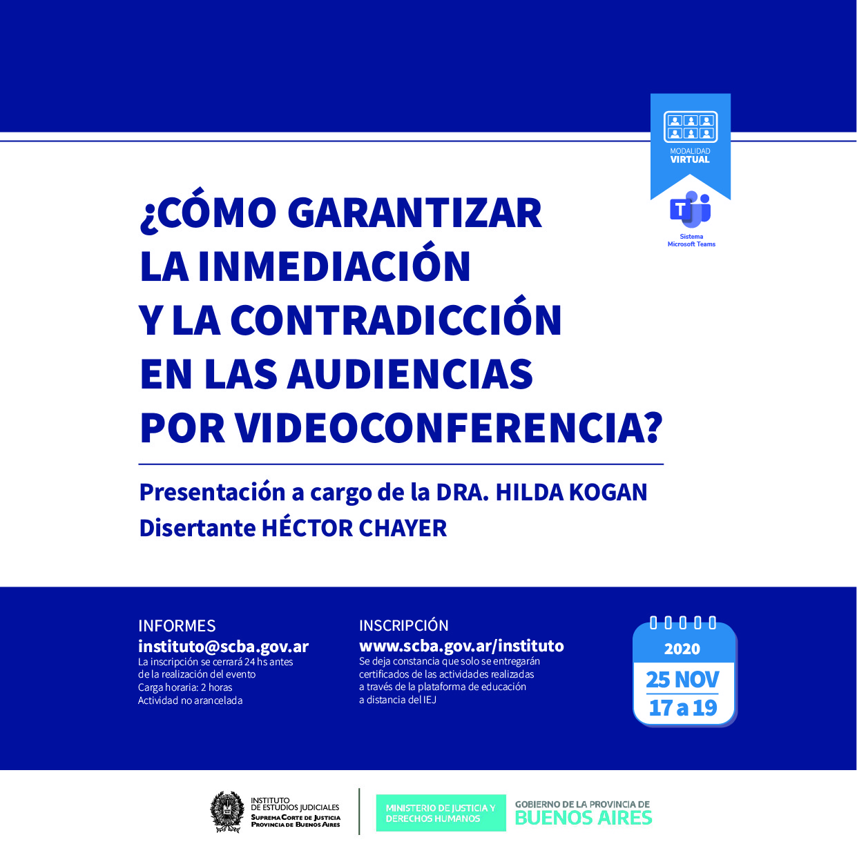 NOTA: La actividad será realizada bajo la modalidad virtual mediante el sistema Microsoft Teams y está destinada exclusivamente a los Jueces y Juezas de la oralidad.
