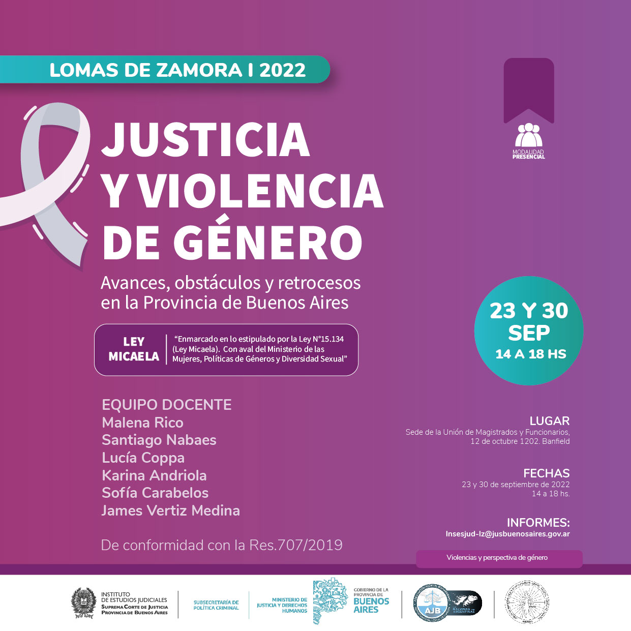 Organizado junto a la Unión de Magistrados y Funcionarios de Lomas de Zamora y a la Subsecretaria de Política criminal del Ministerio de Justicia y Derechos Humanos de la Provincia de Buenos Aires, de conformidad con la Res.707/2019