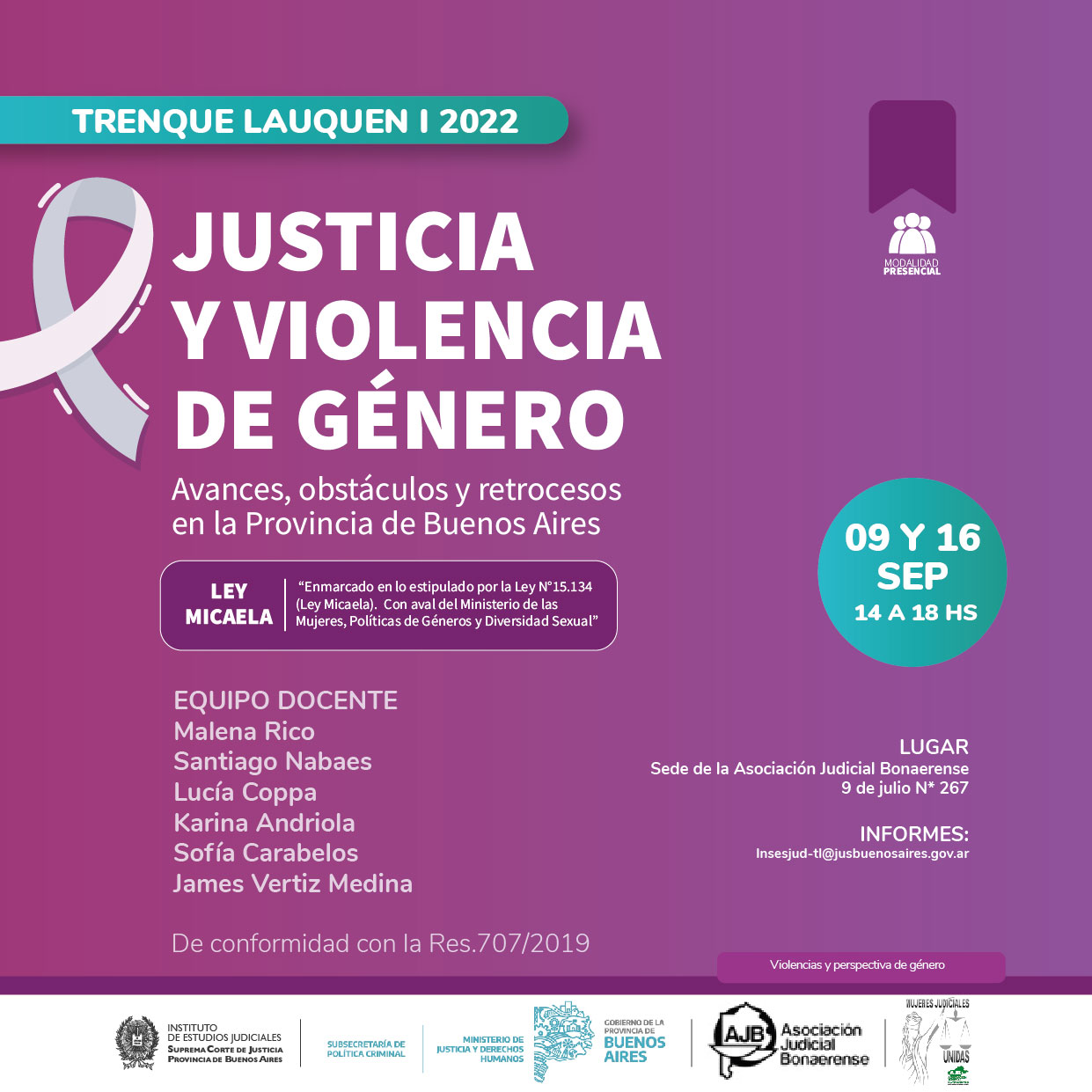Organizado junto a la Subsecretaria de Política criminal del Ministerio de Justicia y Derechos Humanos de la Provincia de Buenos Aires, de conformidad con la Res.707/2019 y con la colaboración de la AJB