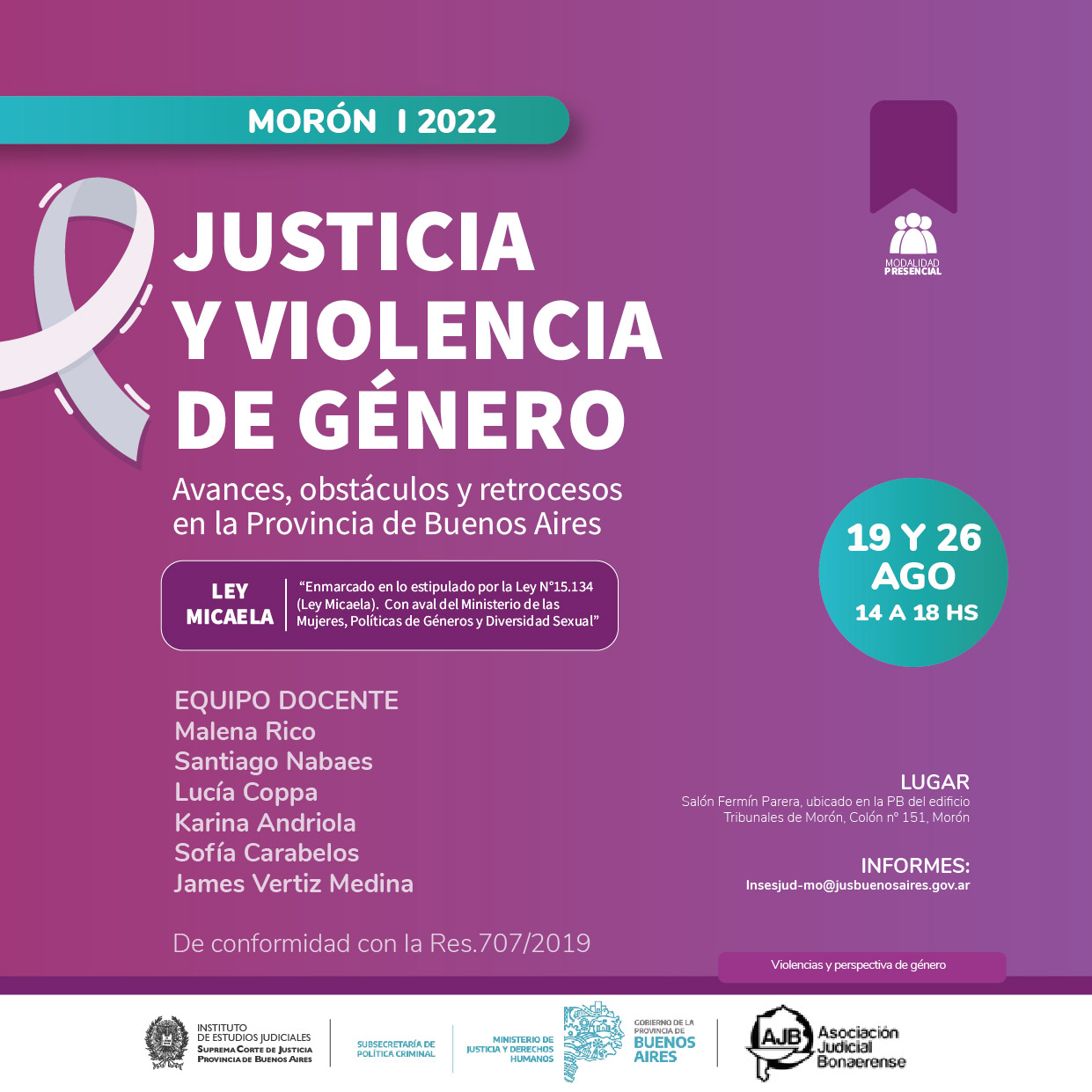Archivos asociados: PROGRAMA DE CAPACITACIÓN IEJ - PRESENCIAL.pdf 128 Kb. , MoronJusticia y violencia genero.jpg 241 Kb.